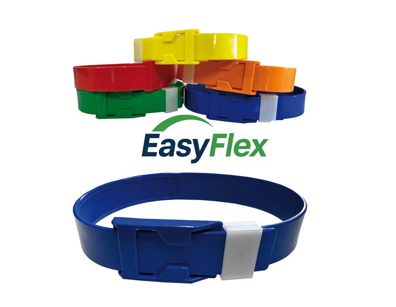 Collare per ovini e caprini per identificazione pratica e veloce. Applicazione al collo con cremagliera di regolazione.